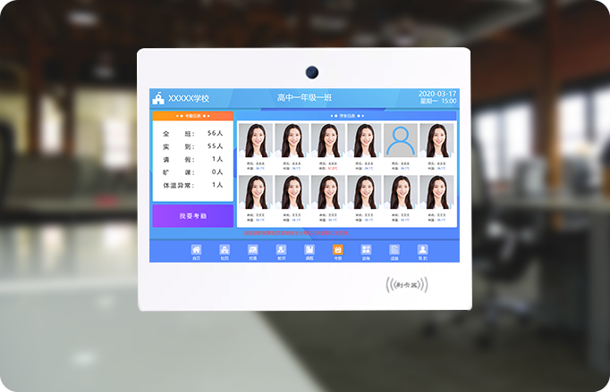 到了考勤時(shí)間點(diǎn),電子班牌自動(dòng)開啟攝像頭進(jìn)行人臉識別工作,記錄全班考勤人數(shù),